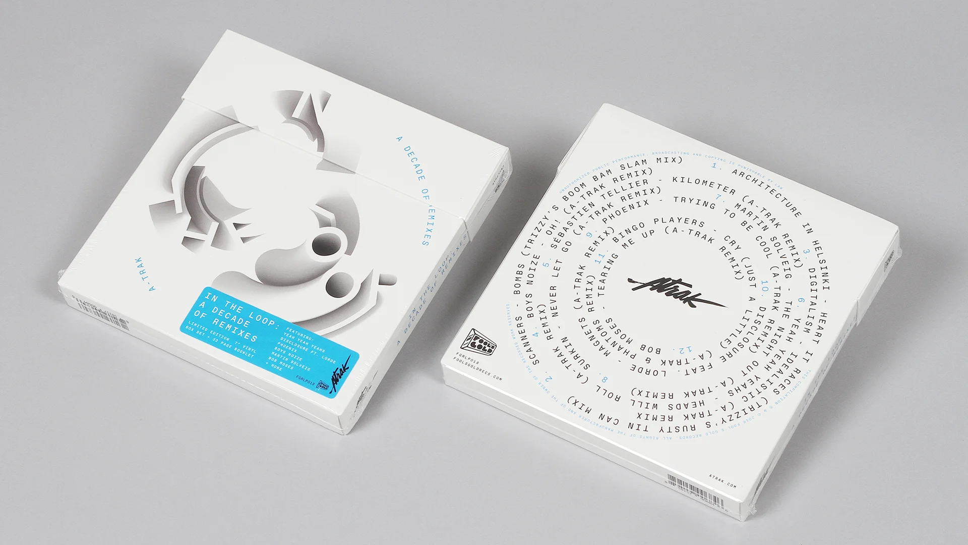 In the Loop: A Decade of Remixes is a limited edition 7” vinyl box set of 13 single records. Each single cover was treated as an individual piece of typographic art, conceptually designed according to the song. All while remaining very separate pieces of work, the covers also work together as a whole, creating a unique identity.